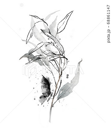 シンプルな 枝 花 水彩 モダン シック 絵具 イラスト 白黒 ペンのイラスト素材